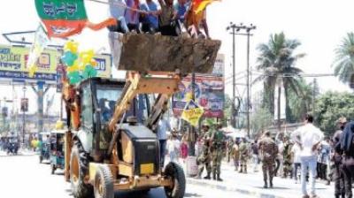 चुनावी मैदान में अनोखा अंदाज, बुलडोजर लेकर पहुंचे प्रत्याशी