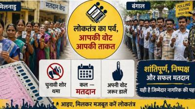 नई दिल्ली: कल गुरुवार, 23 अप्रैल 2026 को होने जा रहे लोकतंत्र के महापर्व के लिए चुनावी बिसात बिछ चुकी है। मंगलवार शाम 5 बजे के साथ ही तमिलनाडु की...