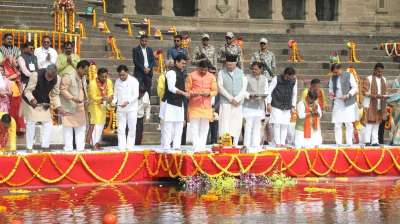 मुख्यमंत्री ने महेश्वर में माँ नर्मदा के घाट पर की पूजा-अर्चना