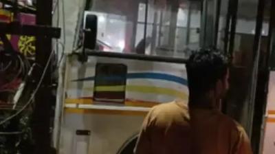 नशे में बस चालक ने मारी टक्कर, बिजली पोल से भिड़ी बस