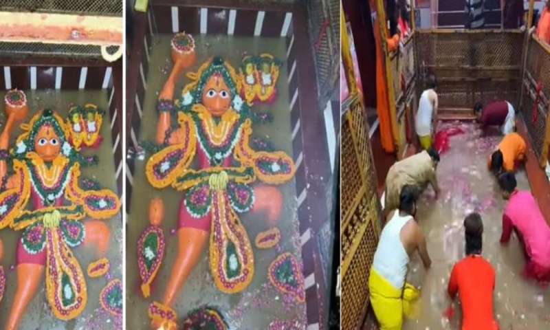मां गंगा के श्री बड़े हनुमान मंदिर में तीसरी बार पहुंचने पर महंत बलवीर गिरि महाराज ने विधि विधान से वैदिक मंत्रोच्चारण के बीच पूजन अर्चन किया। इसके बाद हनुमानजी की आरती की गई। ऐसा पहली बार हुआ है जब पवित्र श्रावण माह में तीन बार श्री बड़े हनुमानजी का जल शयन हुआ है। मंदिर में गंगा जी के प्रवेश करते ही जयकारे गूंजने लगे।
