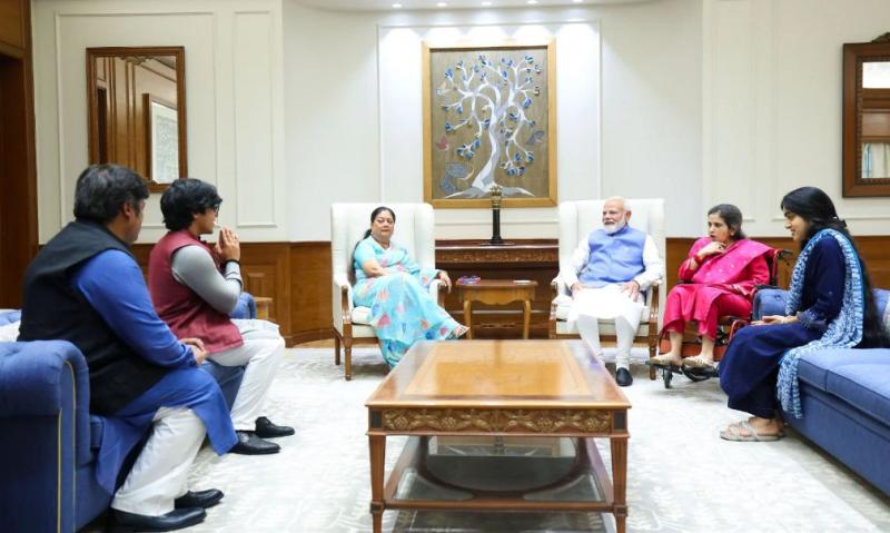 वसुंधरा राजे अपने परिवार के साथ पहुंचीं प्रधानमंत्री नरेंद्र मोदी से मिलने