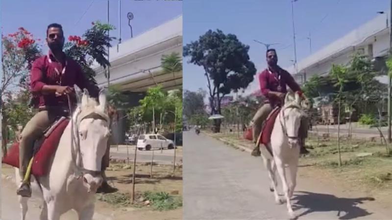 घोड़े पर सवार होकर ऑफिस पहुंचा युवक