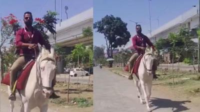 पेट्रोल नहीं मिला तो घोड़े पर निकला कर्मचारी, देवास का वीडियो वायरल