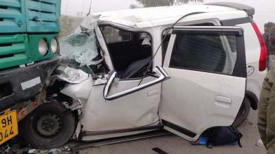 घने कोहरे के कारण मांगोद-मनावर मार्ग स्थित राजपुरा में सड़क किनारे खड़े एक ट्राले में कार घुस गई