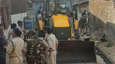 बहजोई रोड पर अवैध कब्जे पर चला प्रशासन का बुलडोजर