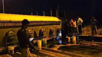 हवाई जहाज का तेल ले जा रहा टैंकर पलटा, लोगों में मची तेल लूटने की होड़