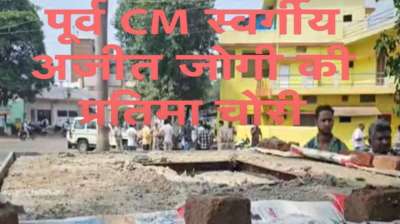 अनावरण से पहले चोरी हुई अजीत जोगी की मूर्ति, कांग्रेस ने प्रशासन के खिलाफ की नारेबाजी